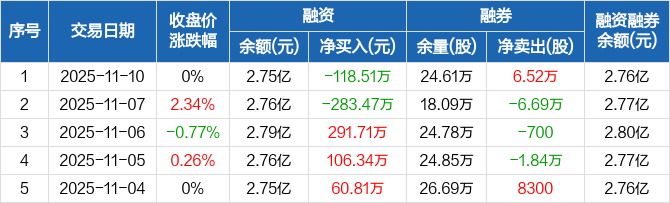信邦制药:融资净偿还118.51万元,融资余额2.75亿元(11-10)