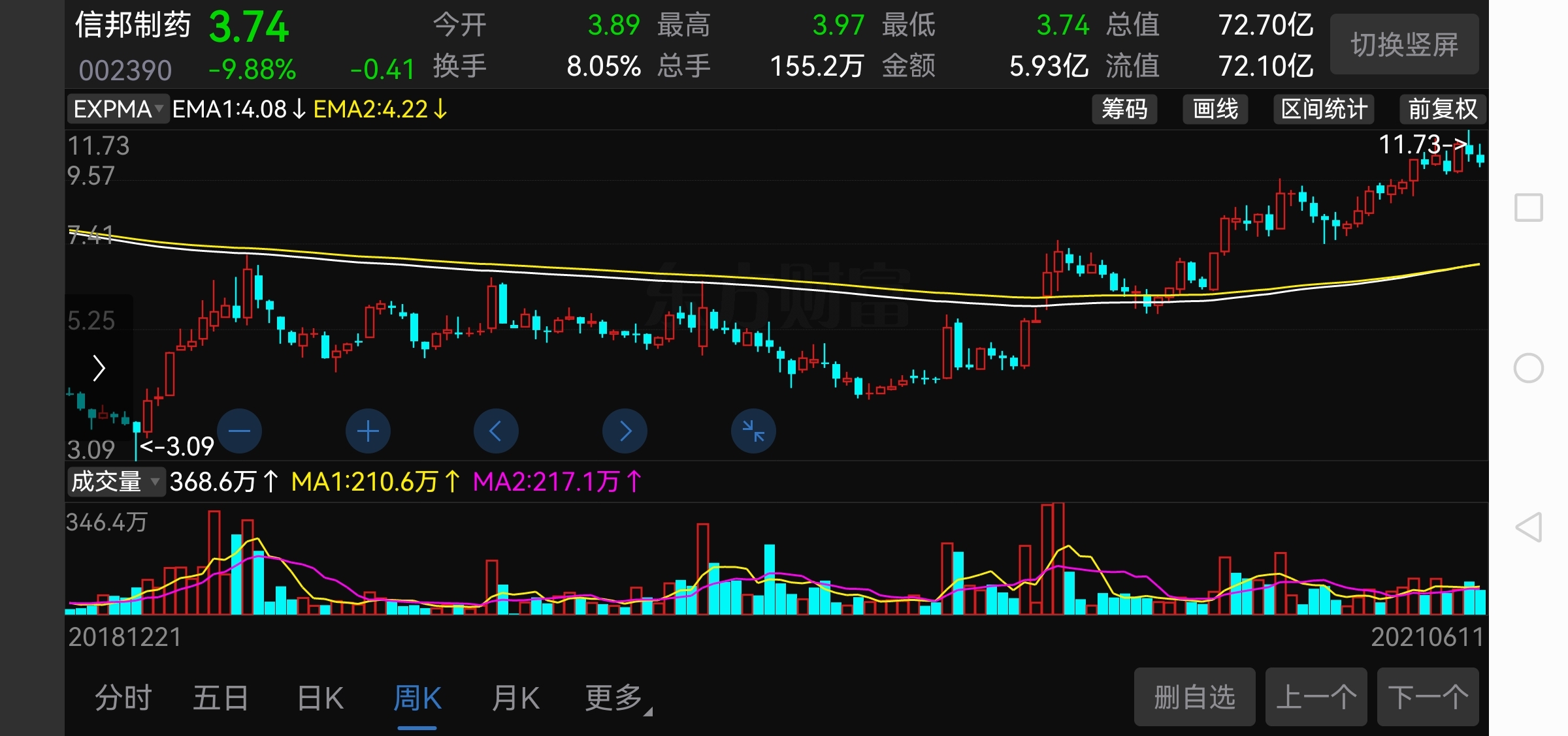 $信邦制药(SZ002390)$ 五堆量才上,还要双低回踩2次。