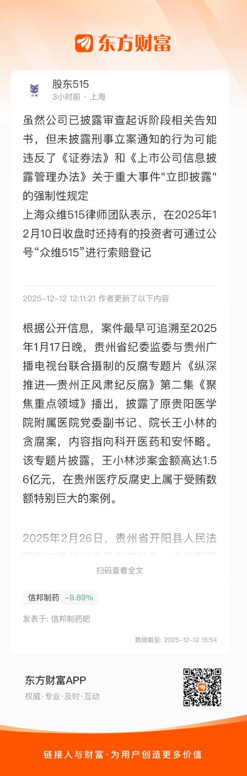 上海众维515律师团队表示,在2025年12月10日收盘时还持有的投资者可通过公号“众维515”进行索赔登记