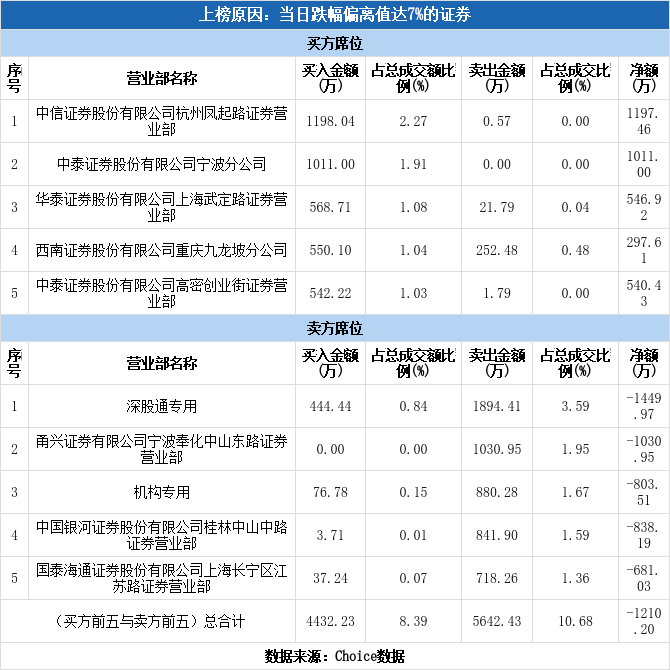 多主力现身龙虎榜,信邦制药跌停(12-12)