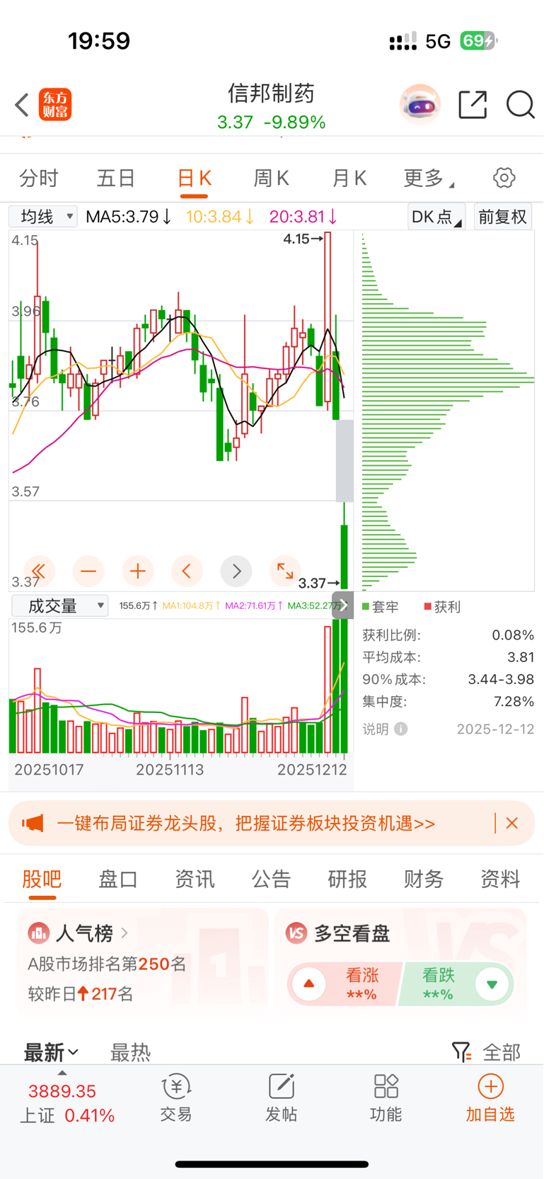 $信邦制药(SZ002390)$ 一习操作猛如虎,一看人气二百五