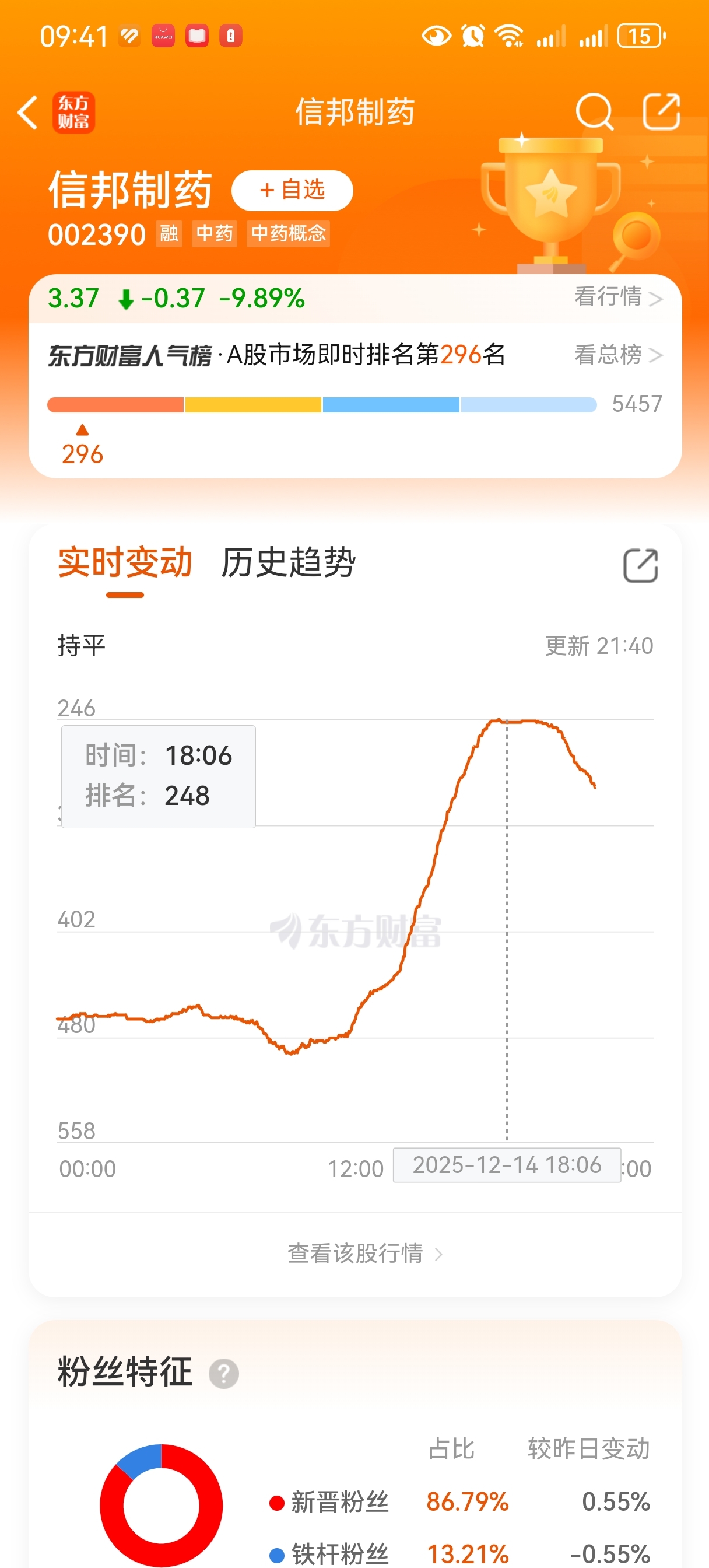 $信邦制药(SZ002390)$ 明天涨停大概率了,人气还在飙升,明天第一次砸盘我就重磅炒底