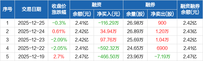 信邦制药:融资净偿还116.29万元,融资余额2.41亿元(12-25)