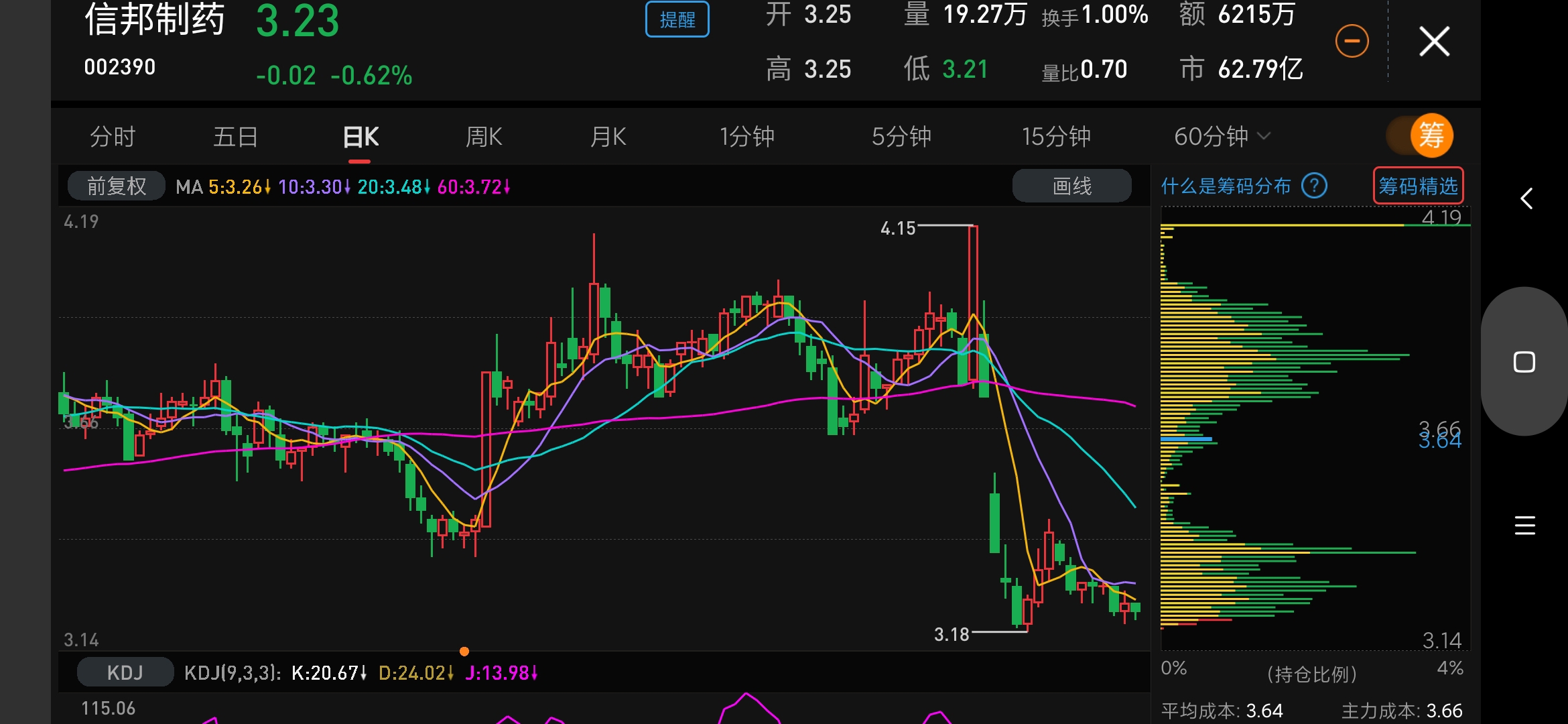 $信邦制药(SZ002390)$ 庄家诱空,此股有机构在4.15处站岗(被套),而我在3.22处全仓抄底,我要锁仓等待惊喜!