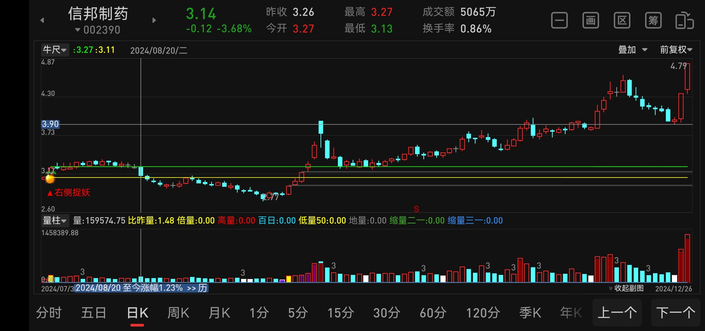 $信邦制药(SZ002390)$ 凹底线3.27未变,不破2.77继续有效,跌破就要重新找了。