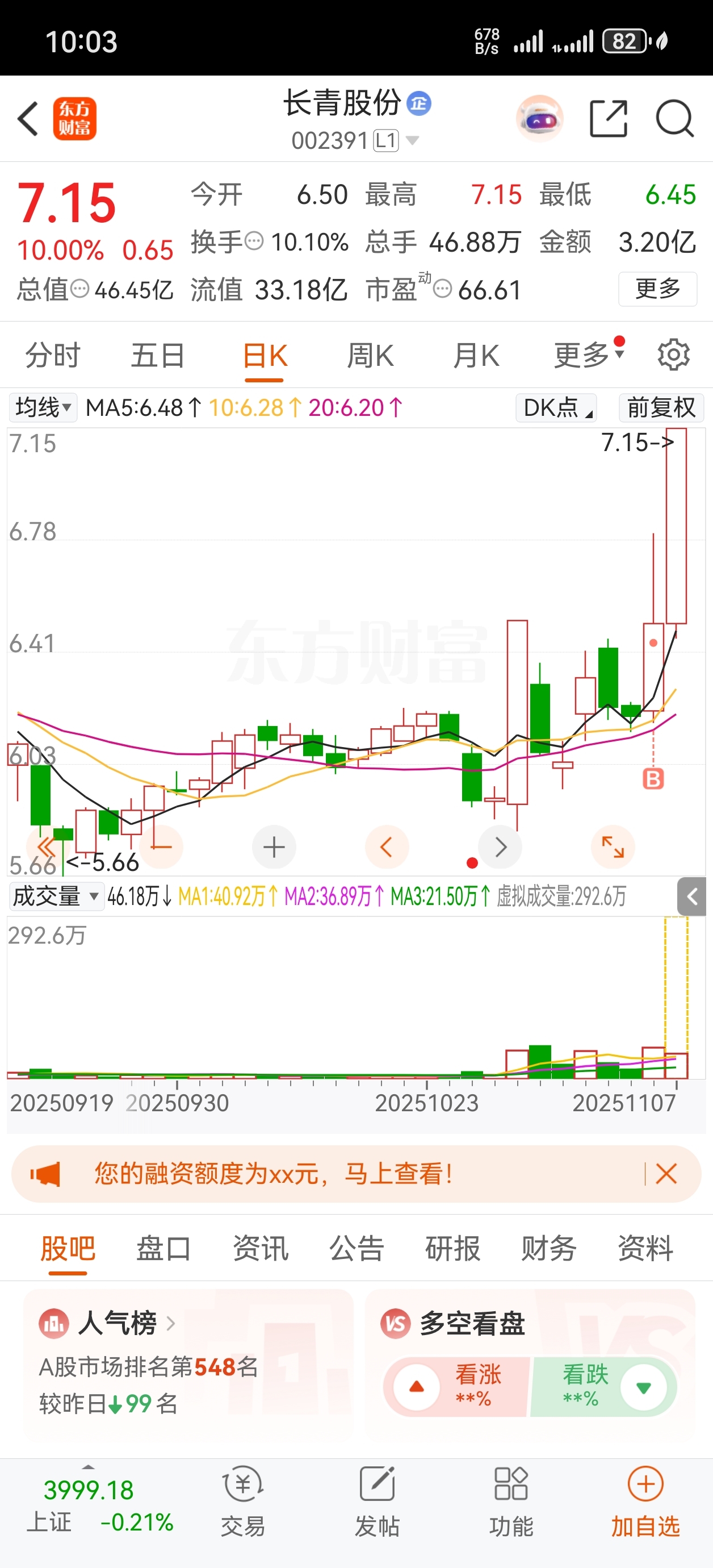 $长青股份(SZ002391)$ 昨天拉涨停的时候进的,昨天没有封板就是主力为了洗掉前高的筹码,接下来可以关注梅雁吉祥