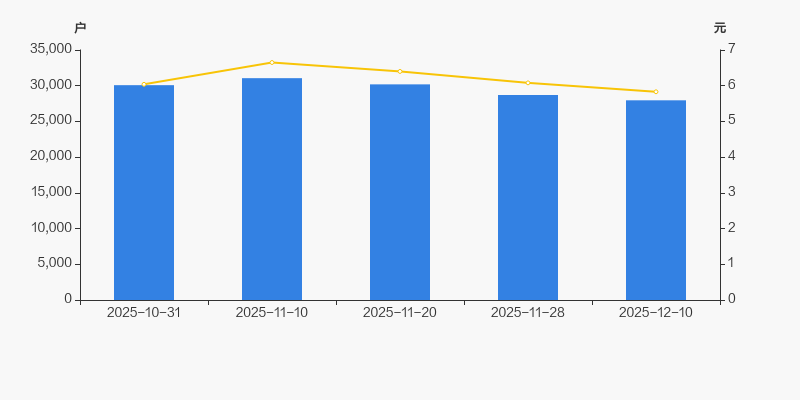 截至2025年12月10日,公司最新总股本为6.5亿股,其中流通股本为4.64亿股。户均持有流通股数量由上期的1.62万股上升至1.66万股,户均流通市值9.68万元。