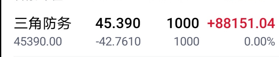 手头几只股票走势较好的还是三角防务,可惜卖的早了点,现只有1000股留作底仓做T