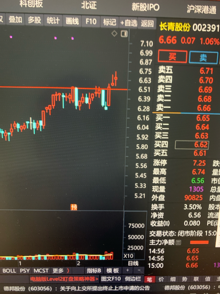 今天没理它。我买入的理由就是它连着三天收盘在6.51之上。今天最低是6.52。就今天这K,依旧算很健康的小回踩。