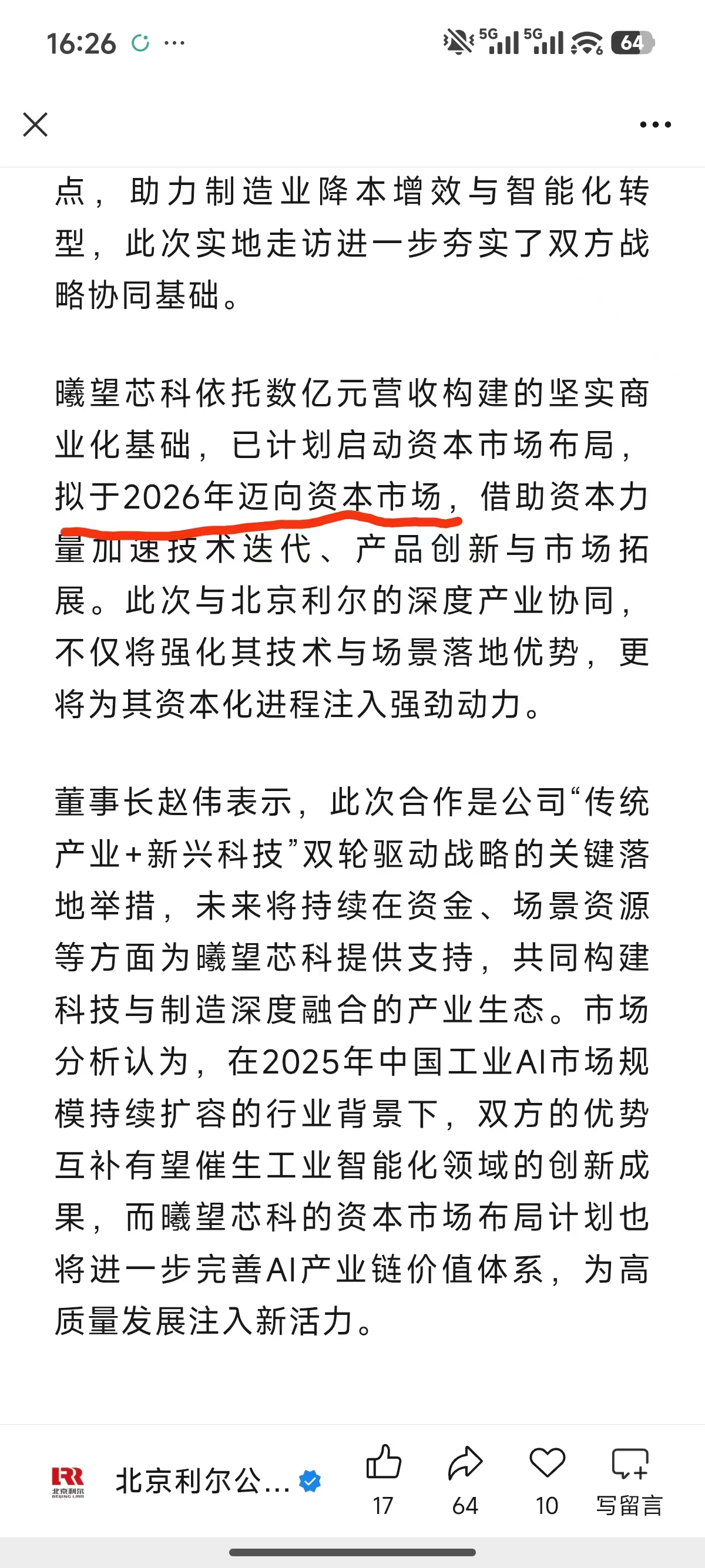 蛮意外的,公众号上说25年曦望数亿营收,26年计划上市都没什么人提。。