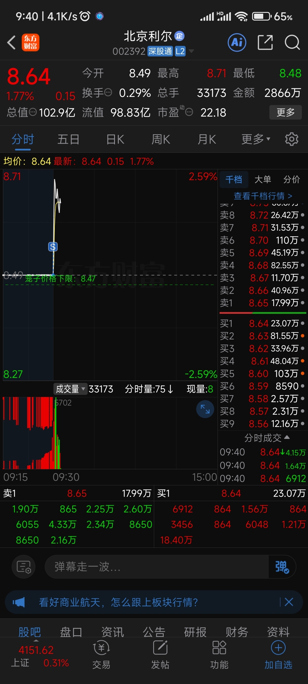 $北京利尔(SZ002392)$ 没热度的杂毛,昨天买今天割,血亏30块。