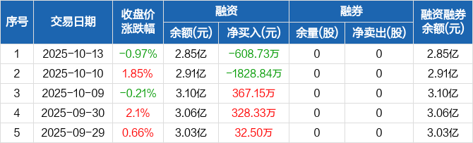力生制药:融资净偿还608.73万元,融资余额2.85亿元(10-13)