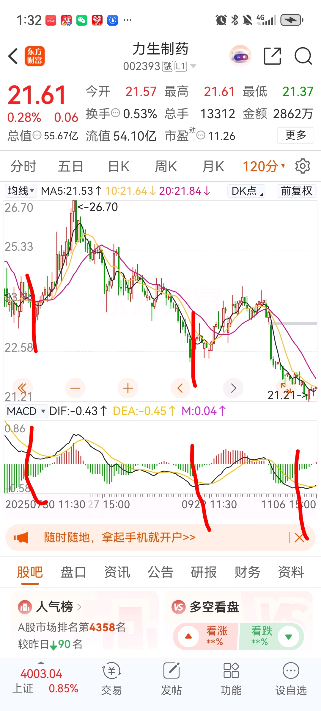 $力生制药(SZ002393)$ 120分钟金叉。好,每一次金叉都不错涨势