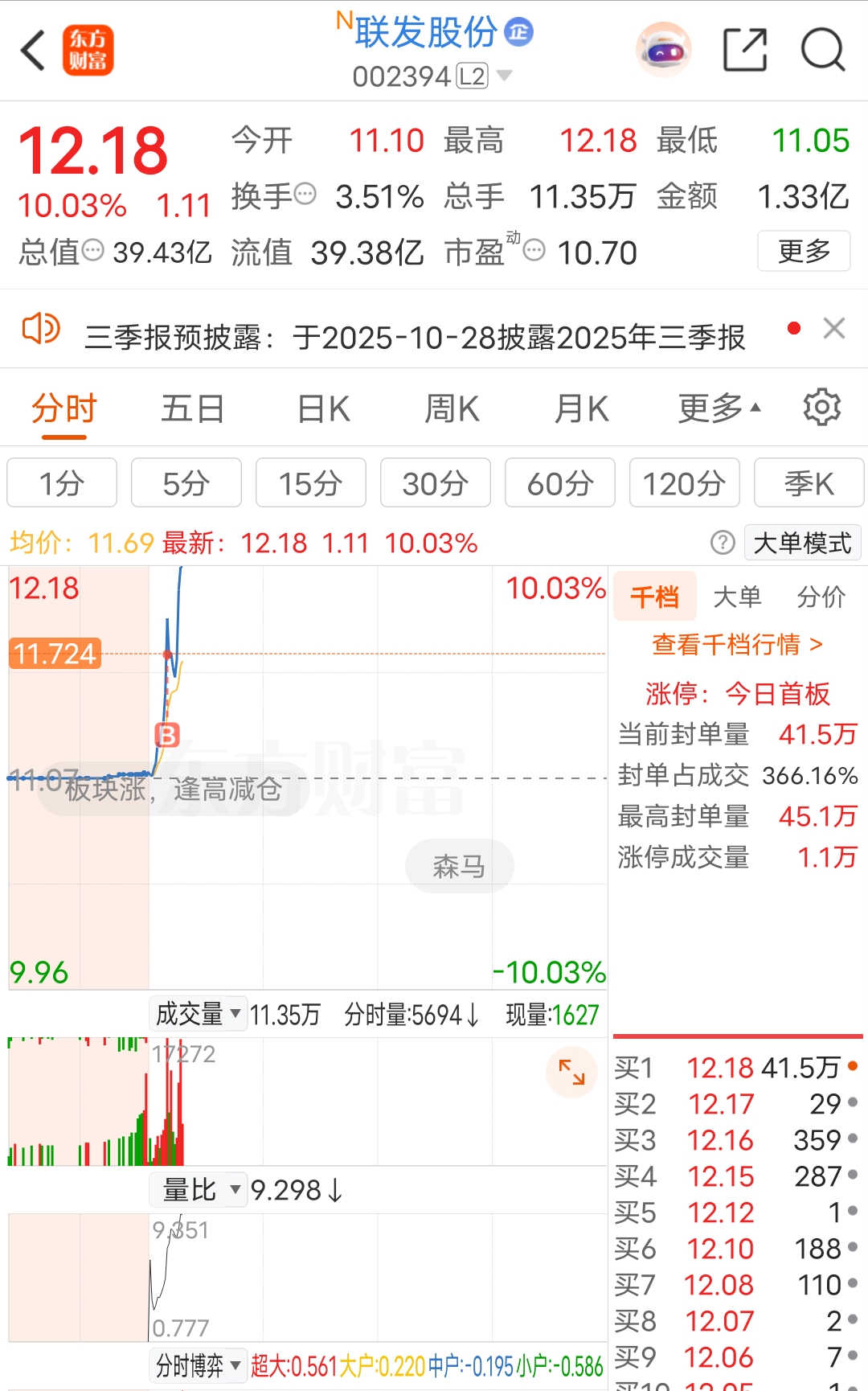 $联发股份(SZ002394)$ 犹豫了十几秒,就买高了3毛钱,买高3%