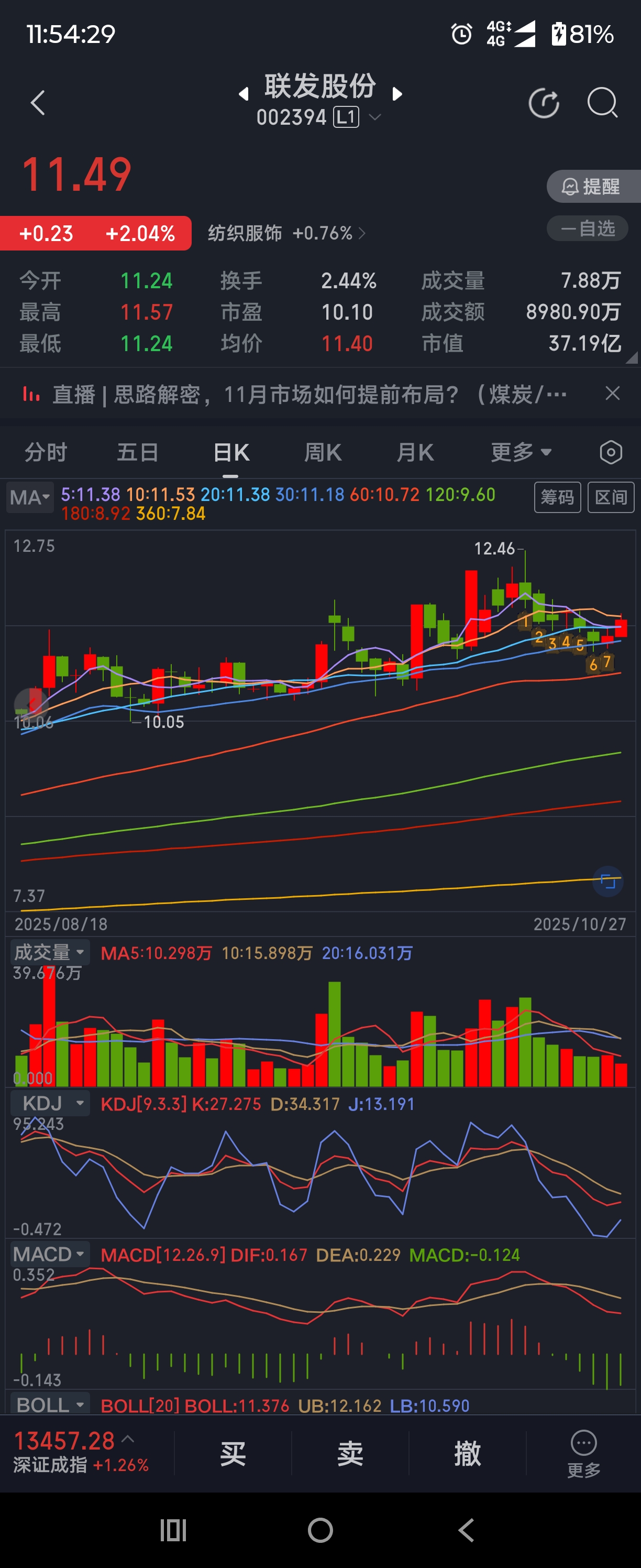 $联发股份(SZ002394)$ 今天是神奇九转第八天,指标也在向好,大家不用着急,会有表现机会的