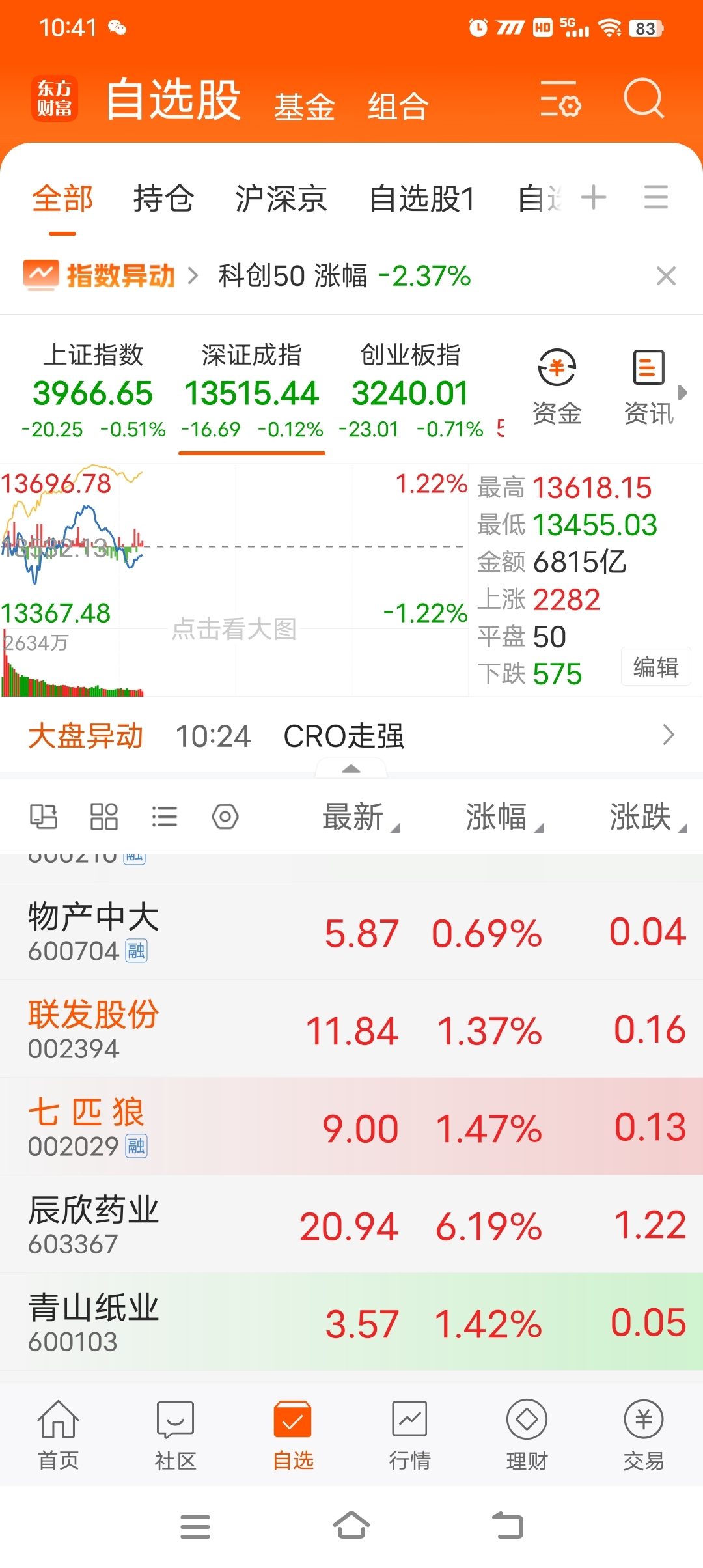 就买了七匹狼和联发股份这2股,居然涨的一样多…~、