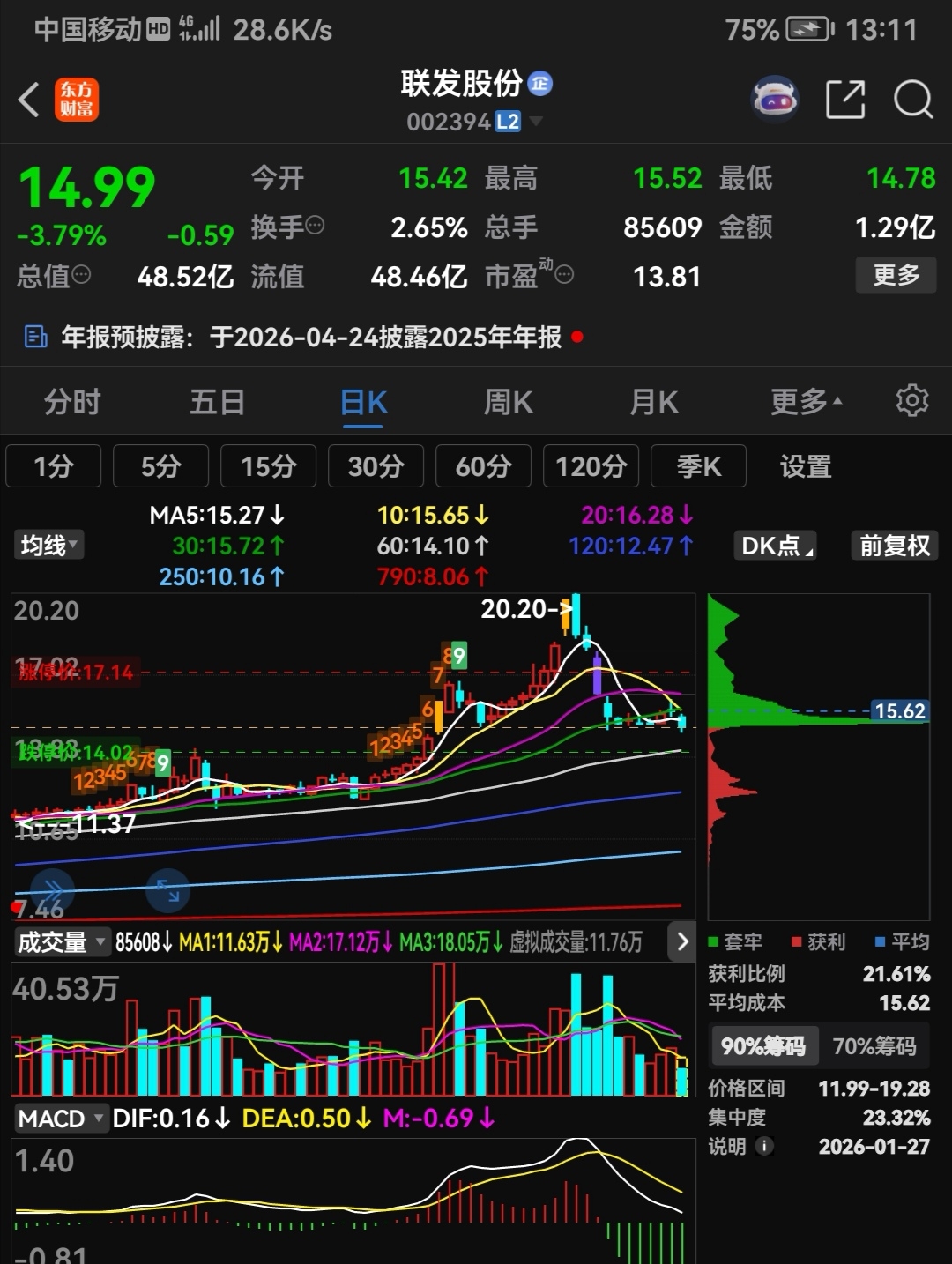 $联发股份(SZ002394)$ 目前,股价怎么走,只要有人进来挂买单,主力卖给你都是赚大钱,是吗?大家怎么看
