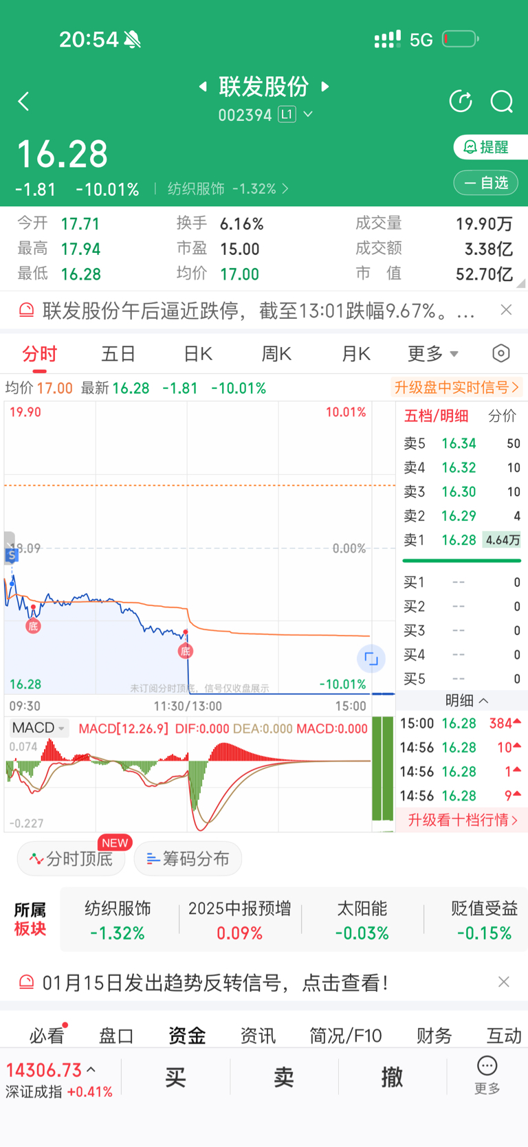 $联发股份(SZ002394)$ 昨天就想跑,今天一开盘就很不对劲, 果断离场! 再来两个跌停板 接回来继续干