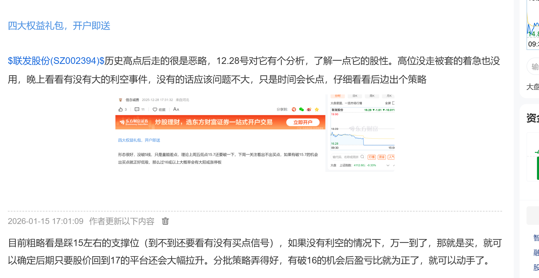 温馨提示: 1.根据《证券法》规定,禁止编造、传播虚假信息或者误导性信息,扰乱证券市场;2.用户在本社区发表的所有资料、言论等仅代表个人观点,与本网站立场无关,不对您构成任何投资建议。用户应基于自己的独立判断,自行决定证券投资并承担相应风险。《东方财富社区管理规定》