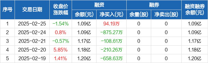 双象股份:融资净买入94.19万元,融资余额1.09亿元(02-25)