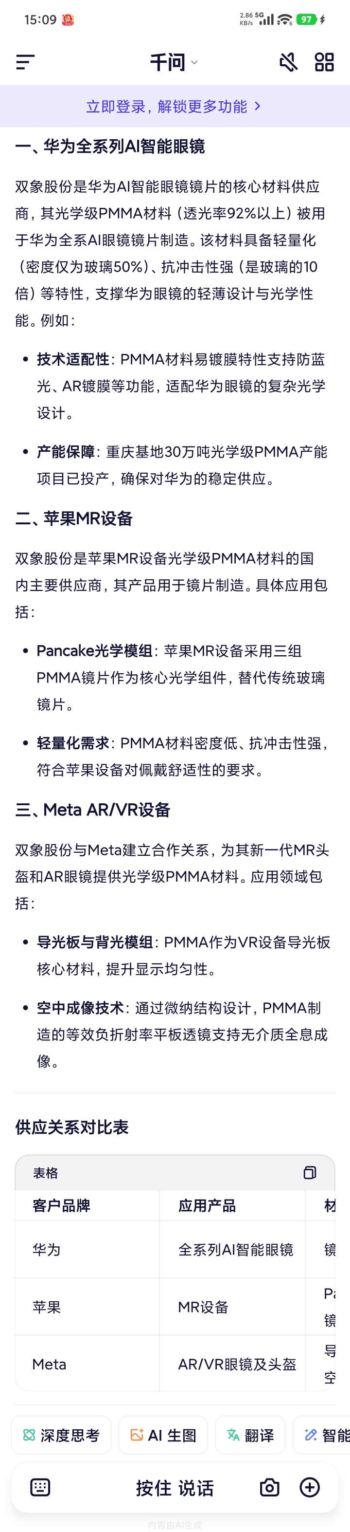 $双象股份(SZ002395)$ 给华为,Meta,苹果供应AI眼镜,VR镜片