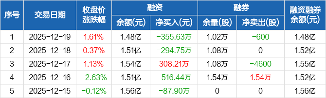 双象股份:融资净偿还355.63万元,融资余额1.48亿元(12-19)