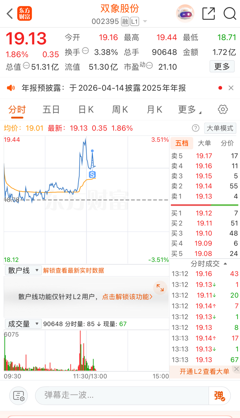 $双象股份(SZ002395)$ 16块买了100000股,这个价格清仓了。等跌回16再接回
