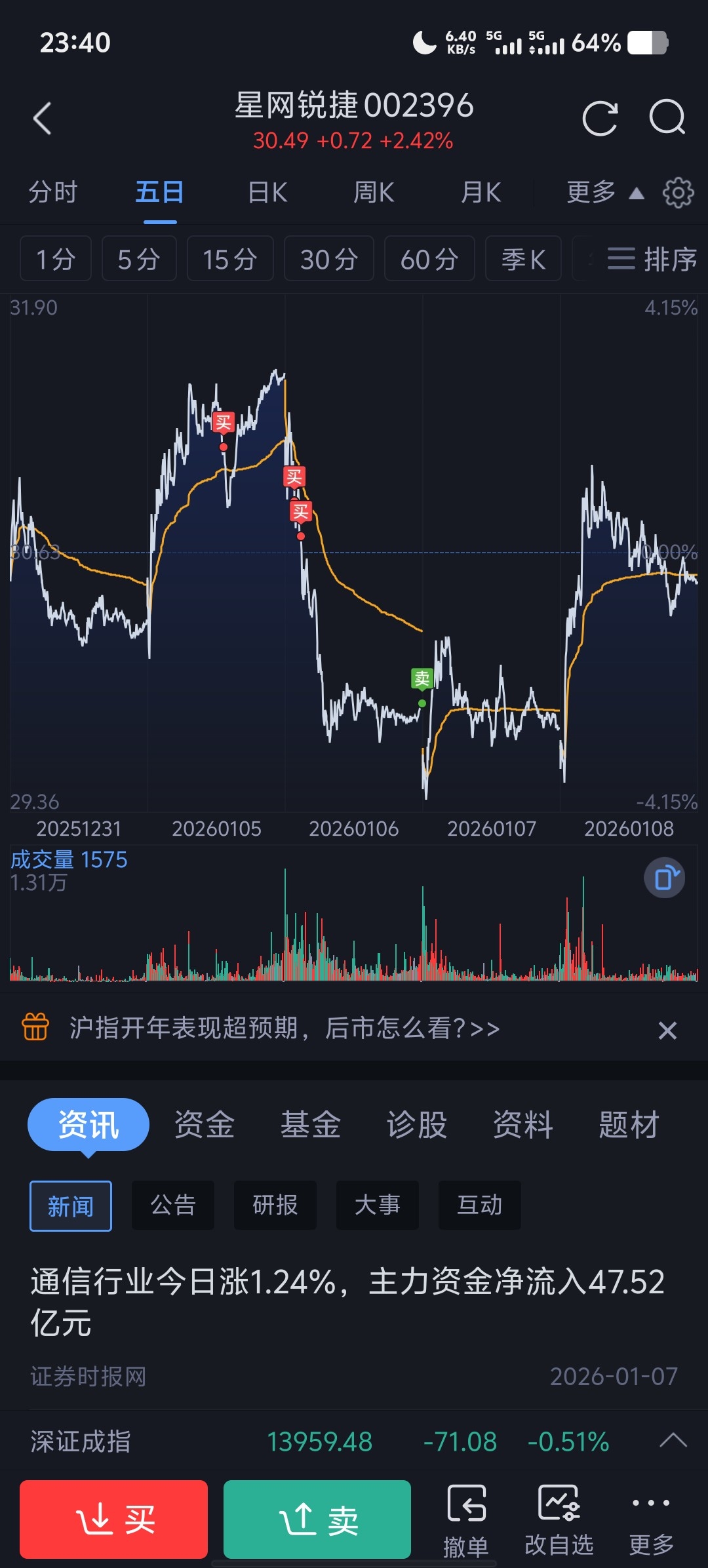 $星网锐捷(SZ002396)$ 明天能不能跌下来让我上车