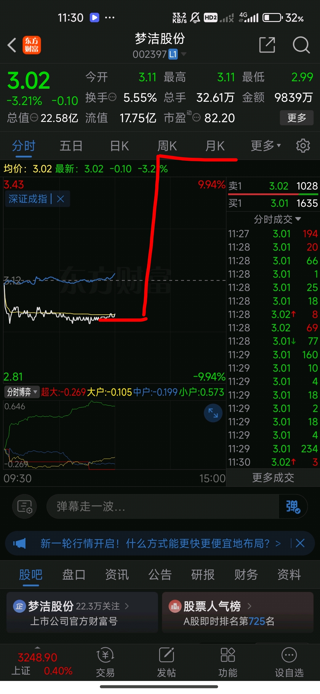 $梦洁股份(SZ002397)$ 相信我,下午直线拉升,吓坏宝宝。