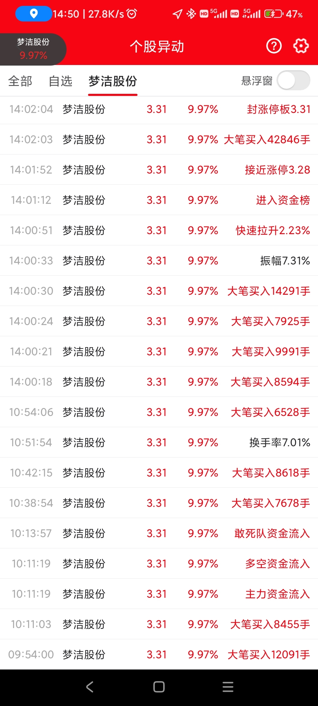 $梦洁股份(SZ002397)$ 单单上榜就13万手了。明天买不到了。