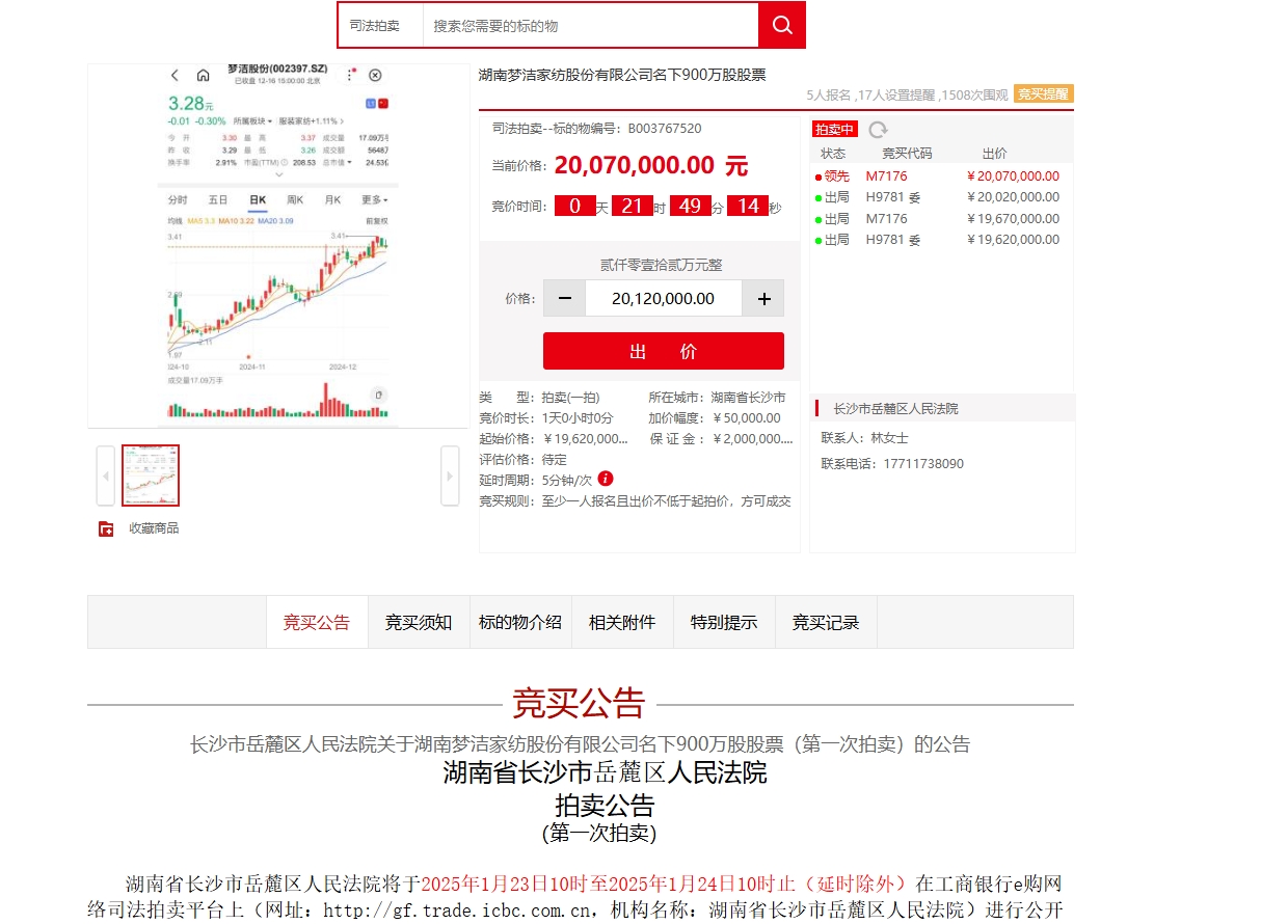 $梦洁股份(SZ002397)$ 竞价拍卖。