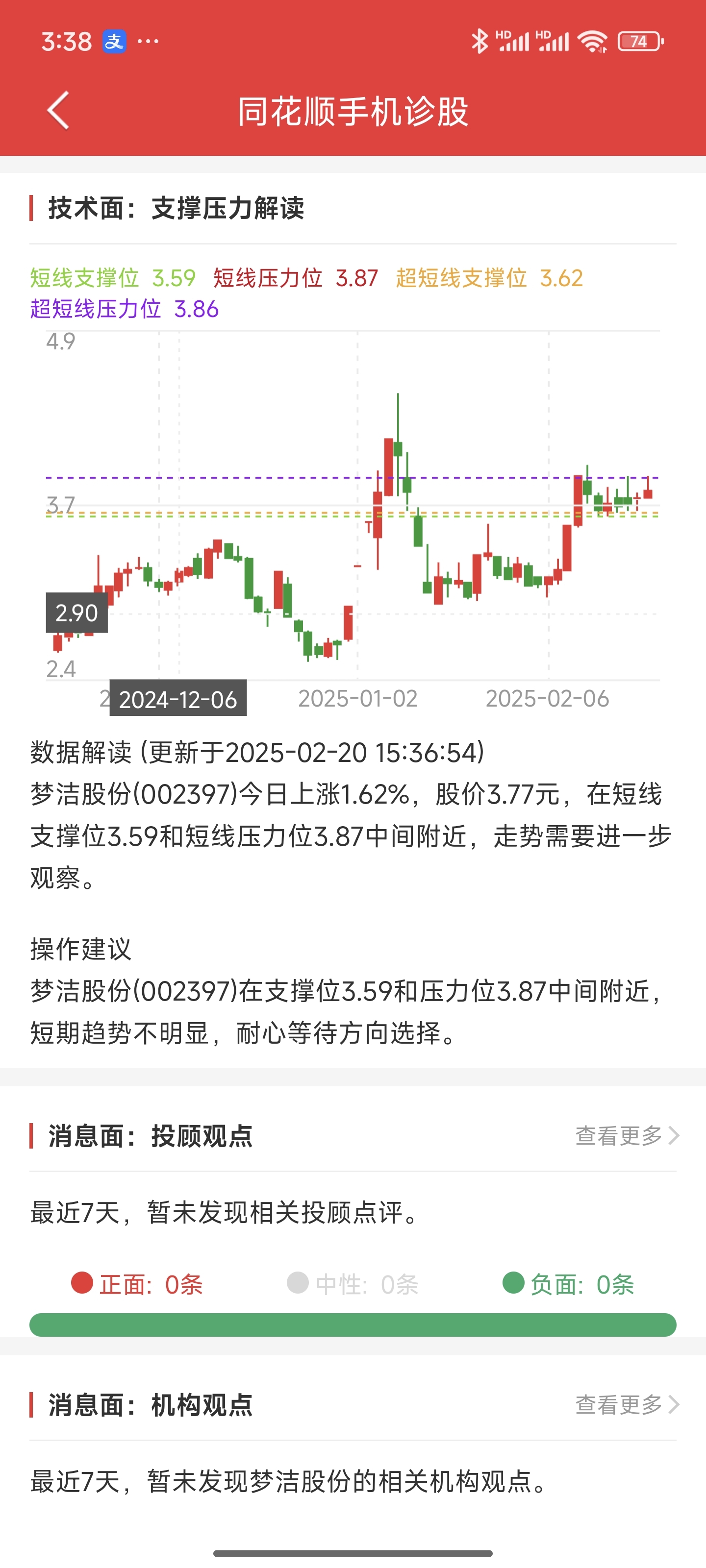 $梦洁股份(SZ002397)$ 3.87真的是超级压力位,这个位置每拉一分都得上万手买入,但是它就是每天涨几分钱,感觉有大动静