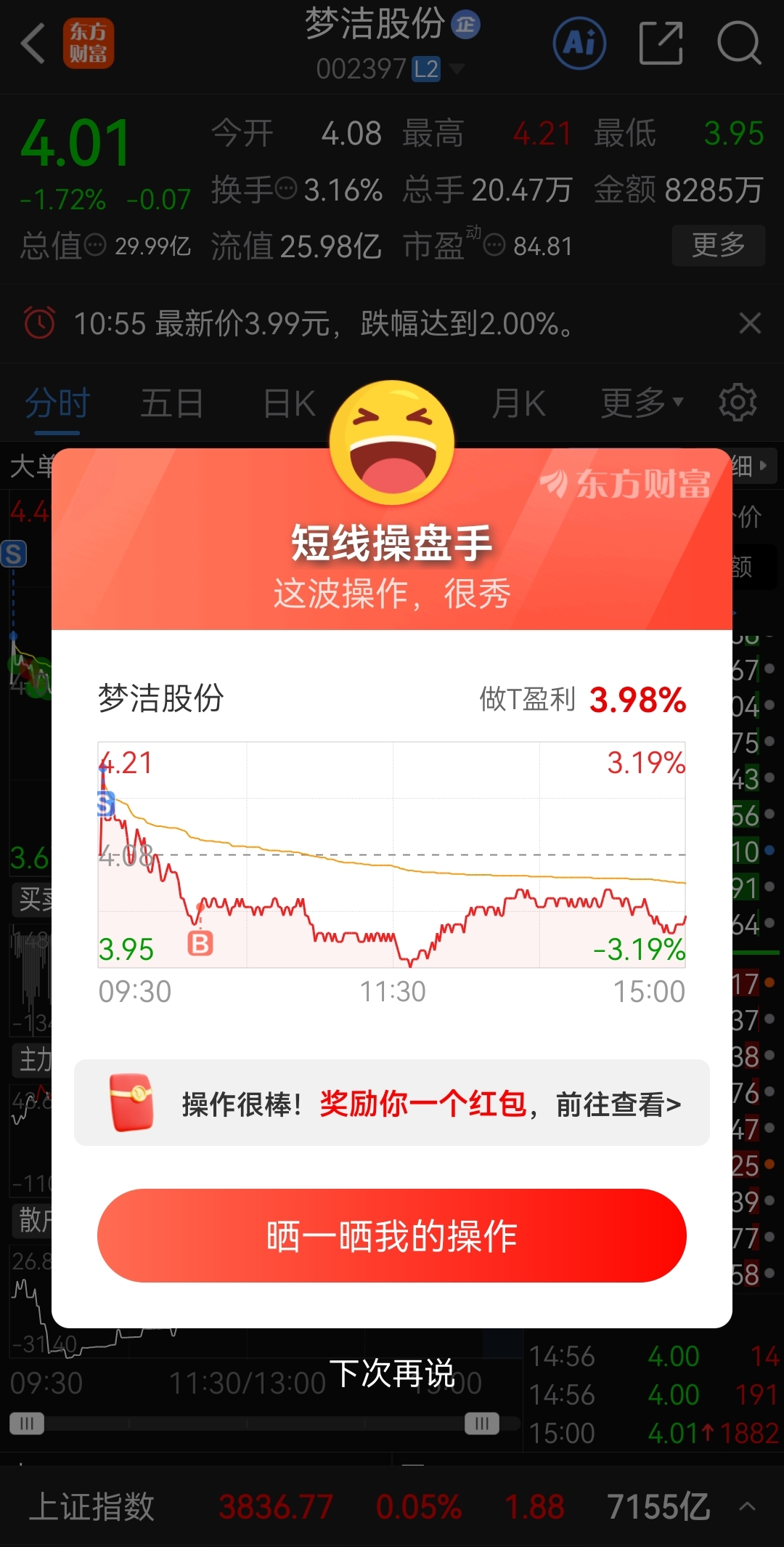 $梦洁股份(SZ002397)$ 继续T,今天有点急买早了。