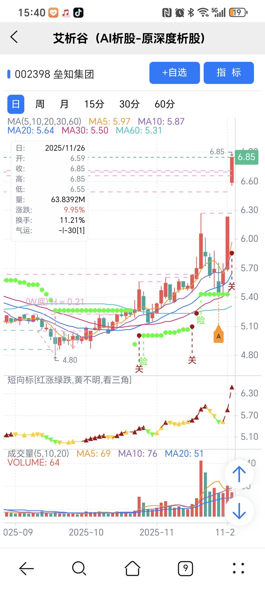 风险:股价下穿短趋线或红变绿。