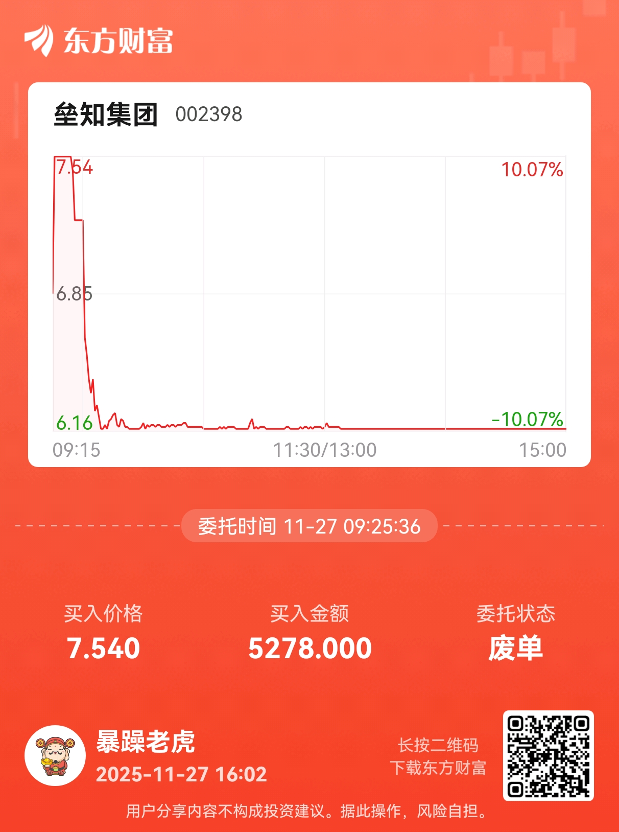 早上9.30分挂涨停买,开盘后瀑布杀心碎一地,结果一看成废单了,喜极而泣,今日是