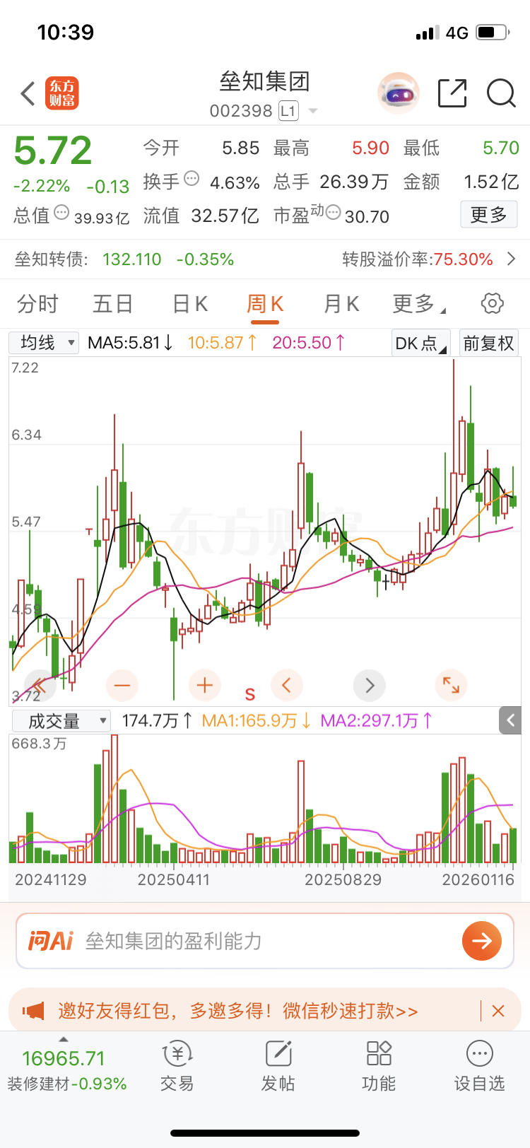 $垒知集团(SZ002398)$ 经典的上升趋势,周线只要不跌破20日线就可以一直拿。底仓永远不动,回到20日线补仓,上涨远离20日线就减仓,滚动操作,没有半点问题。