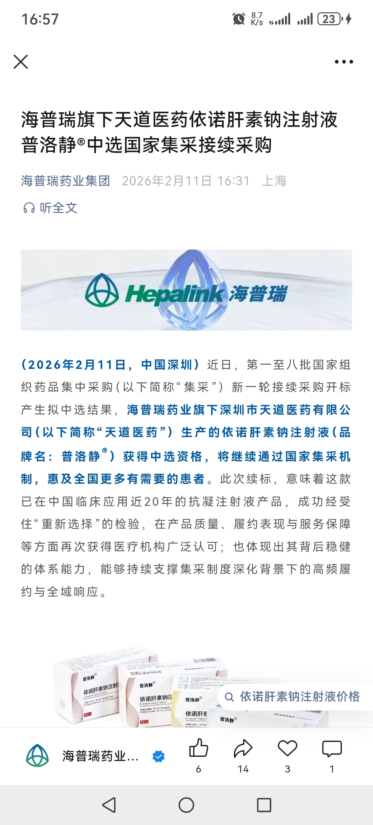 $海普瑞(SZ002399)$ 这么好的事,为啥不发公告?