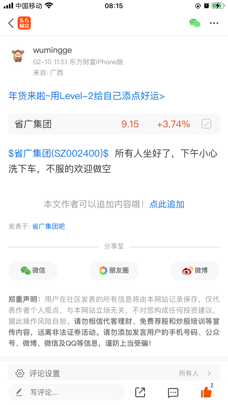 $省广集团(SZ002400)$ 请看上图时间,今天再次提前提醒所有人注意坐好了,欢迎下车的各位你们的目的地已到了,很遗憾前面的风景只能在车上才能看到