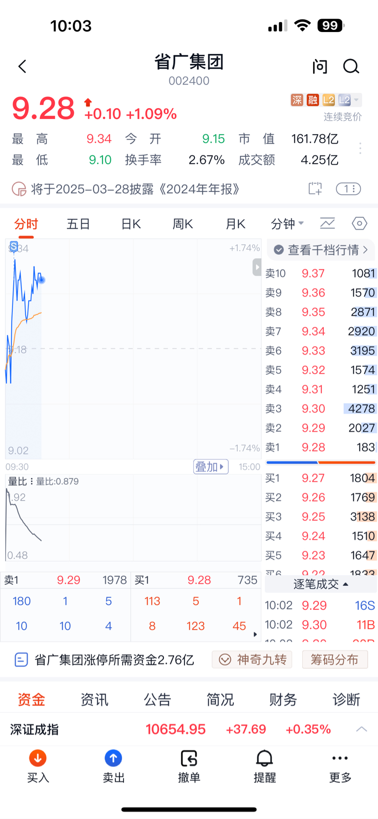 $省广集团(SZ002400)$ 先走了,不贪,绿了在接。