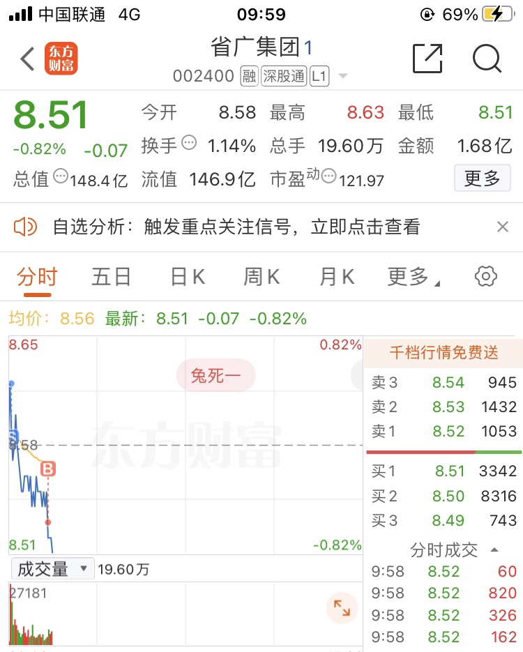 $省广集团(SZ002400)$ 虽然t了9分钱。还是有点着急了。等会大盘下落可能还有更低。