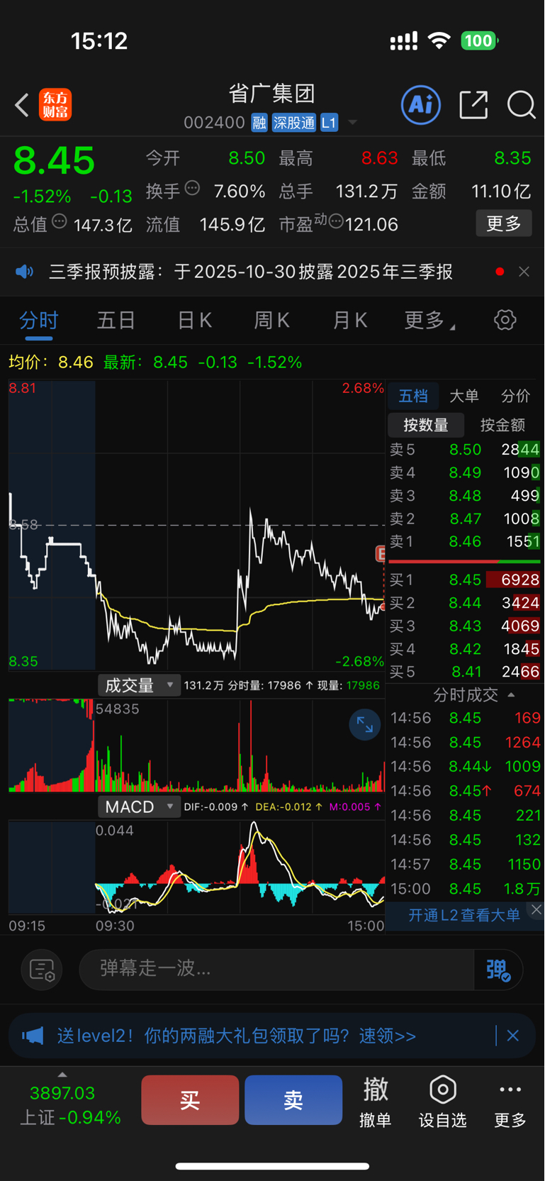 $省广集团(SZ002400)$ 除了散户多,其他没毛病