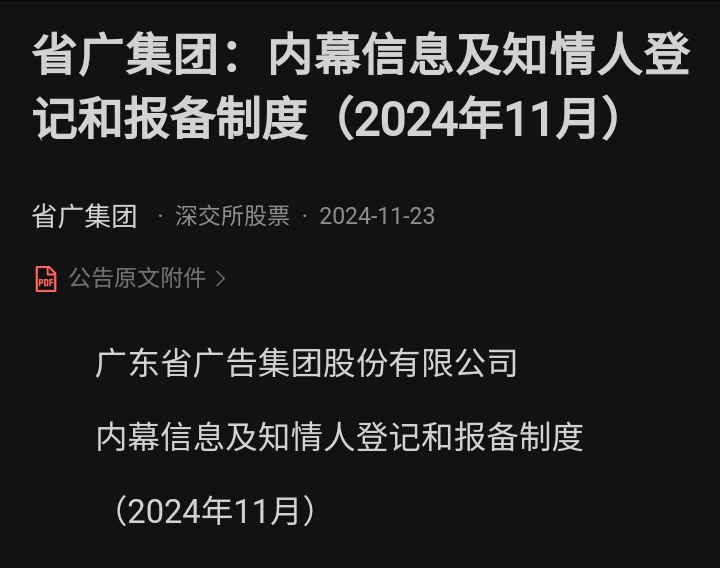 省广集团自从发布了广东省广告集团股份有限公司内幕信息及知情人登记和报备制度后互动