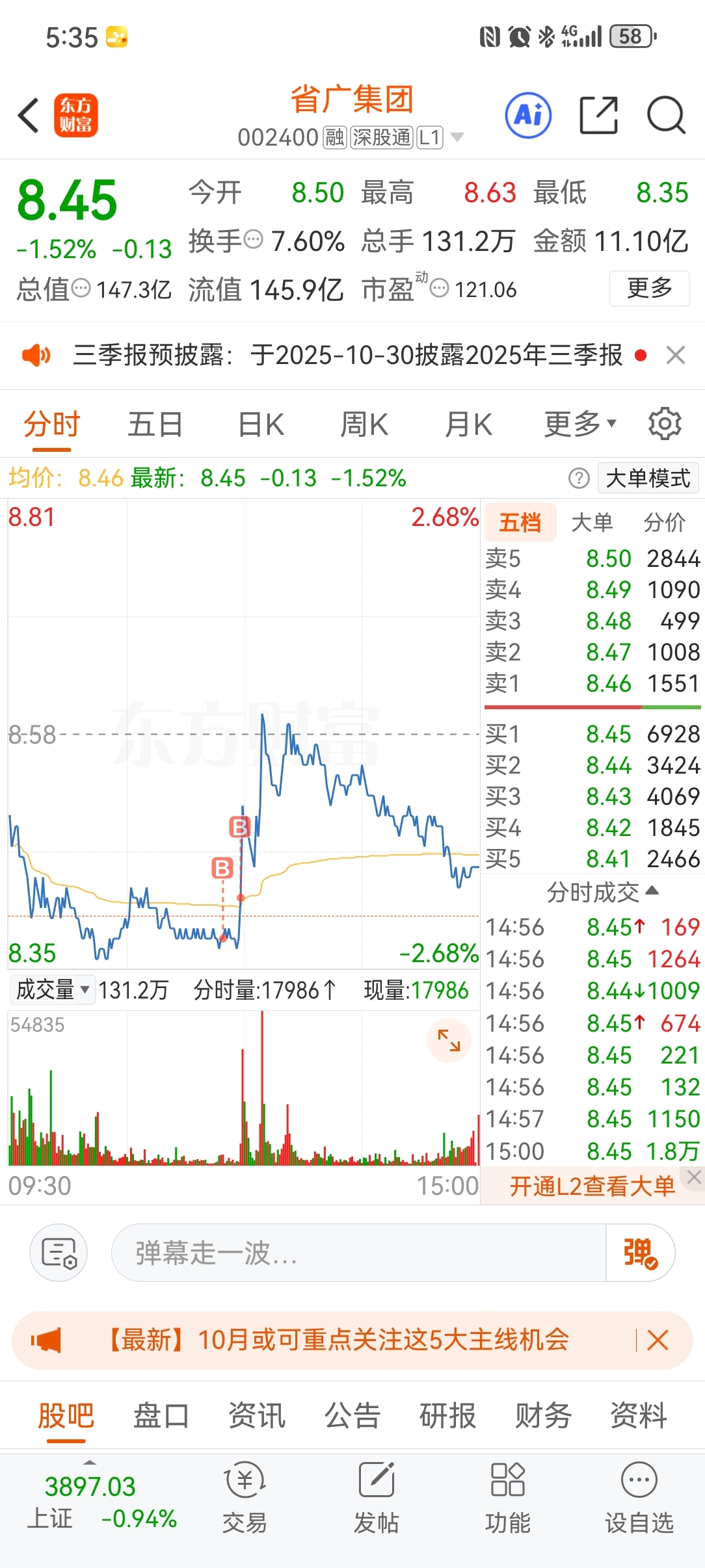 $省广集团(SZ002400)$ 周五手欠啊,周一不会跌停吧