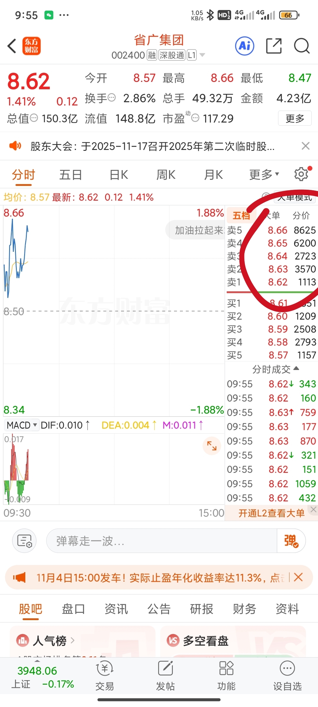 $省广集团(SZ002400)$ 上面这些人,纯纯的坏种,涨一点就开始压单,就是控盘不让涨