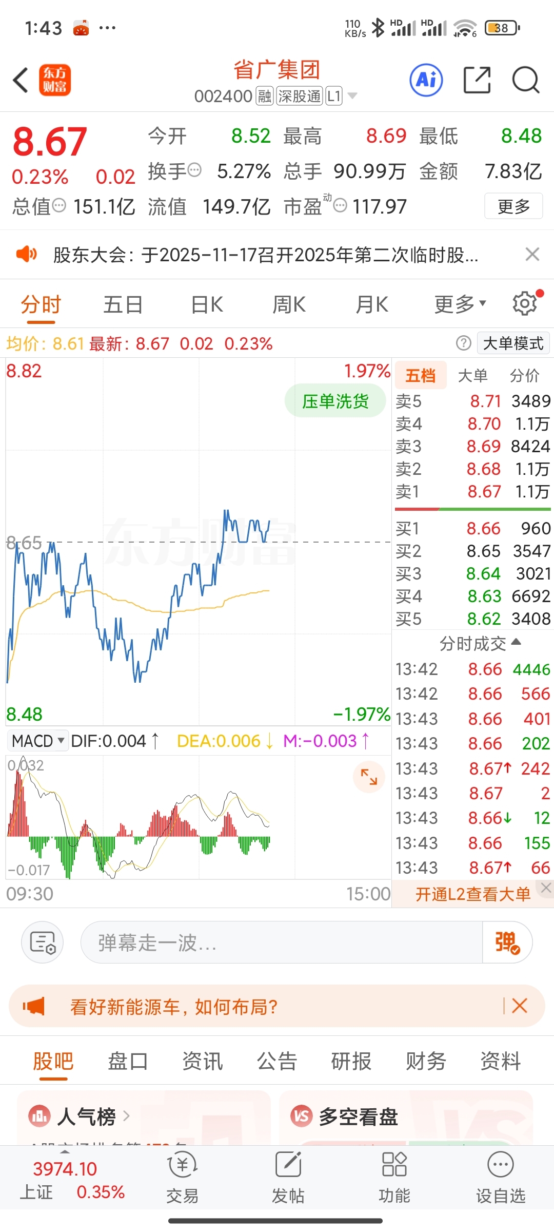 $省广集团(SZ002400)$ 压单太少了,在多来一点呀,压个6万手嘛