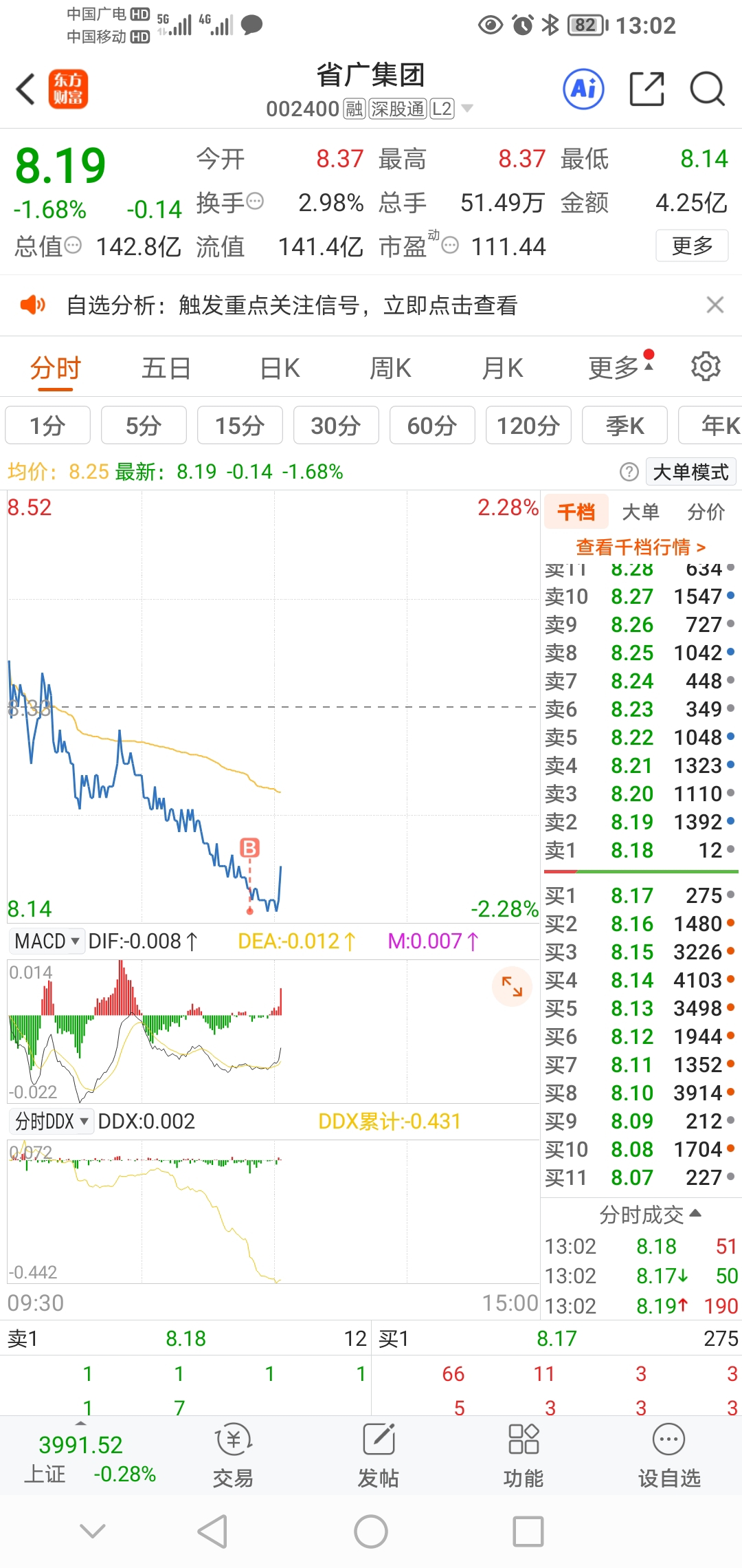 $省广集团(SZ002400)$ 8.15已经抄底进场,随便你涨跌!