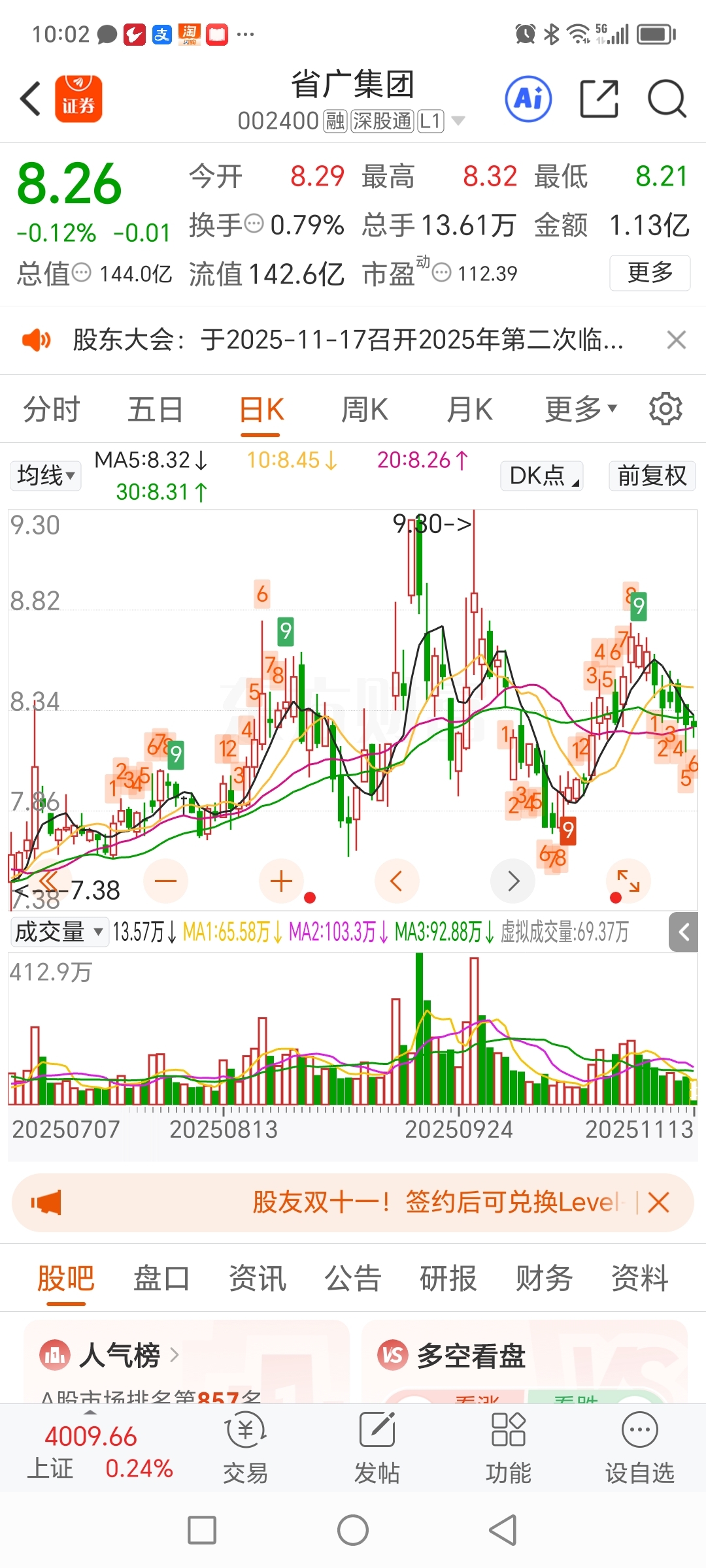 $省广集团(SZ002400)$ 还要跌4天,九转今天才到6