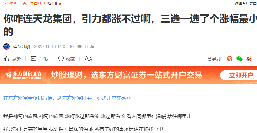 温馨提示: 1.根据《证券法》规定,禁止编造、传播虚假信息或者误导性信息,扰乱证券市场;2.用户在本社区发表的所有资料、言论等仅代表个人观点,与本网站立场无关,不对您构成任何投资建议。用户应基于自己的独立判断,自行决定证券投资并承担相应风险。《东方财富社区管理规定》