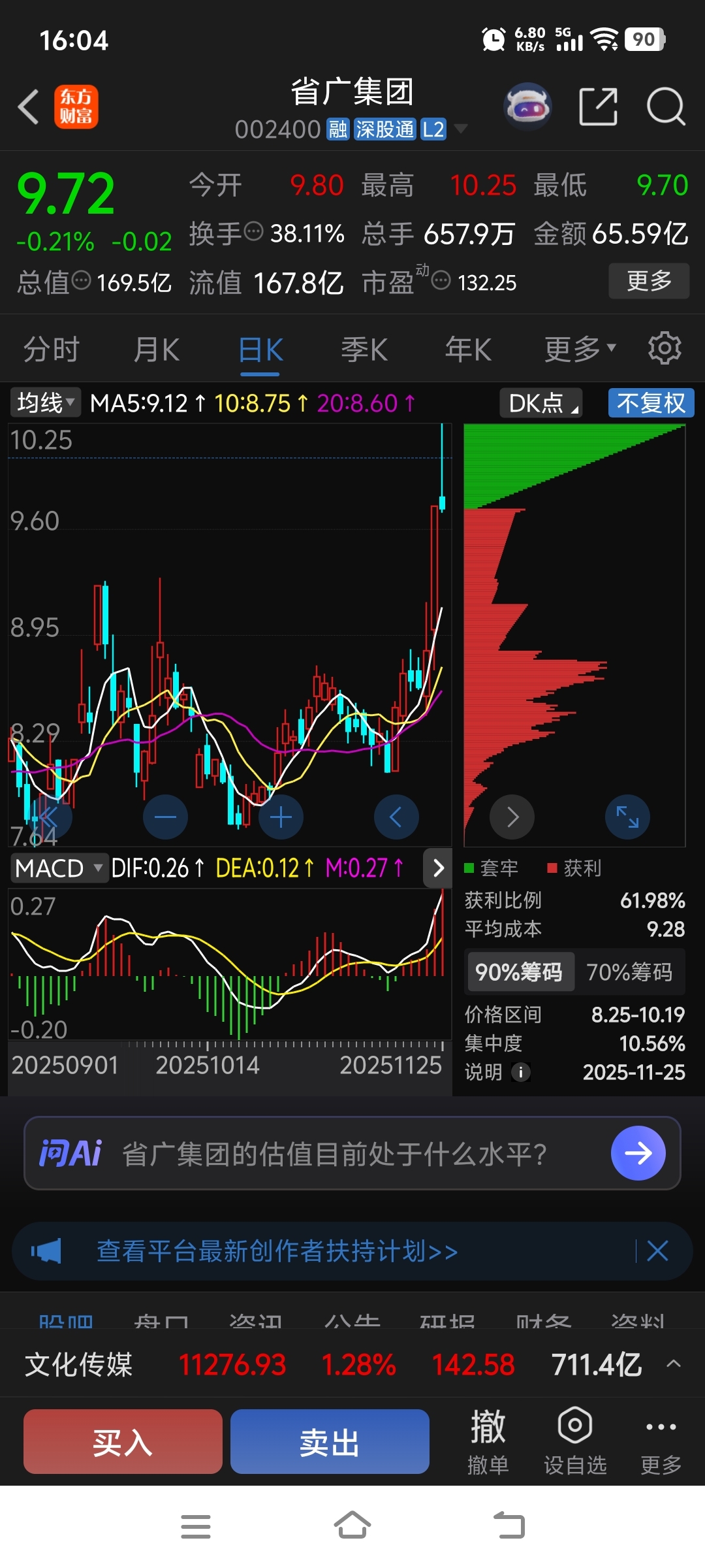 $省广集团(SZ002400)$ 请问大家东方财富版本更新了吗,筹码峰变样了