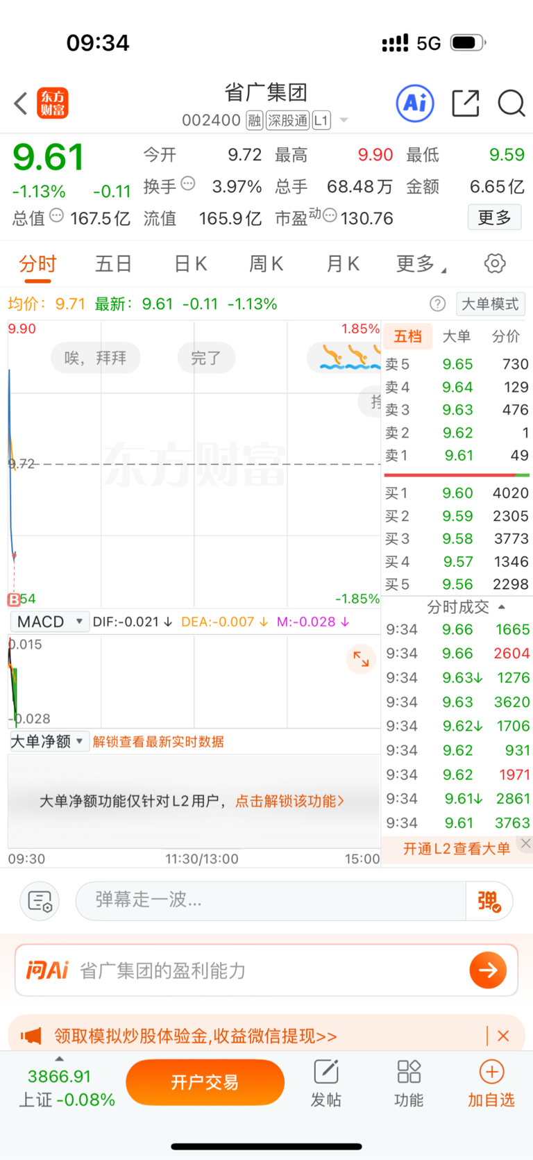 水下9.61选择介入$省广集团(SZ002400)$ #强势机会# #实盘记录# #投资干货# #投资随笔#
